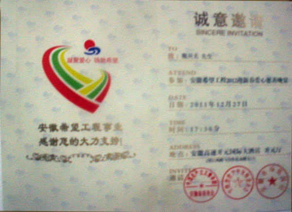 由共青團安徽省委、安徽省青少年發(fā)展基金會(huì )、市場(chǎng)星報社聯(lián)合主辦的“安徽希望工程 2012迎新春愛(ài)心慈善晚宴” ,12月27日晚在安徽高速開(kāi)元國際大酒店隆重舉行。