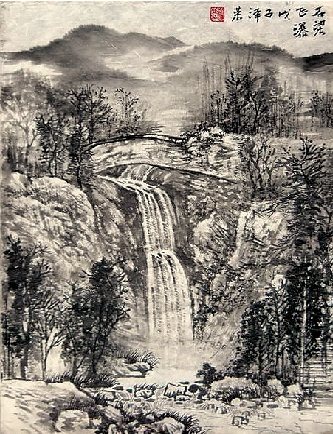 山水畫(huà)是畫(huà)家主觀(guān)精神訴求的流露。劉澤榮對山水情有獨鐘,經(jīng)常約三五好友登山臨水,揮毫寫(xiě)生。他走遍了祖國的名山大川,領(lǐng)略和體悟山川的壯麗秀美及無(wú)限神韻。為了尋找山川的內涵和感覺(jué)、各種山石的形成及特色,他 “搜盡奇峰打草稿,在大量寫(xiě)生中汲取營(yíng)養、認識創(chuàng )作規律。因此,劉澤榮的山水畫(huà)卷,讓人大有登山則情滿(mǎn)于山,觀(guān)海則情溢于海之感。那草那樹(shù),都被賦予了勃勃生機;山的巍峨壯觀(guān)、水的清澈激越、云的輕柔飄逸、霧的亦夢(mèng)亦幻、草的昂然臨風(fēng)、樹(shù)的蔥郁蒼勁,都幻化在了審美的意境之中。他的山水畫(huà)從傳統中來(lái),卻又明顯印上了現代烙痕。劉澤榮深諳外師造化,中得心源的畫(huà)理,對中國傳統山水畫(huà)進(jìn)行了耐心的建構。他的山水畫(huà)中,重巒疊嶂,逶迤連綿,溪流、瀑布、水潭明通暗連,更兼煙云繚繞,樹(shù)木蔥郁,表現出渾然天成、生機無(wú)限的趣味和空?幽靜的禪意。其畫(huà)面和用筆,至詳至悉,其布景繁簡(jiǎn)共容、疏密得體。山水畫(huà)已成為他表達思想感情的藝術(shù)符號,山水的精神氣韻已滲透到主體的生命之中。于是,那些雄壯奇美、平衡穩健的畫(huà)面,以一種排山倒海般的力量撲面而來(lái),給人們一種強烈的視覺(jué)沖擊力。他堅守著(zhù)自己的繪畫(huà)語(yǔ)言,不斷完善繪畫(huà)圖式,很好地印證了石濤法自我立的名言。