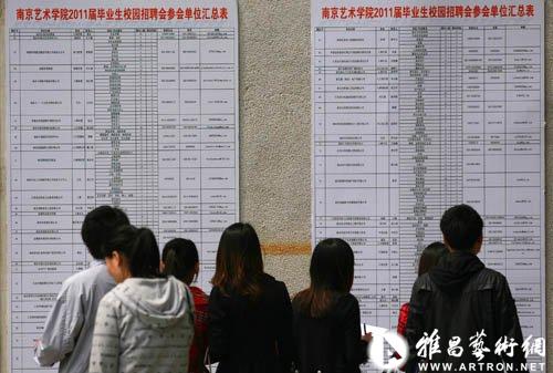 某藝術(shù)院校的校園招聘會(huì )上,學(xué)生們焦急地查看招聘信息。
