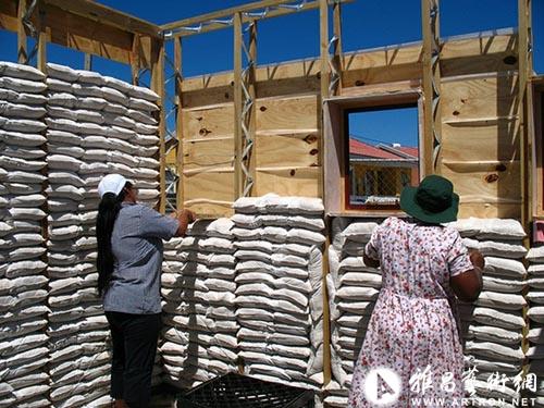 在南非開(kāi)普敦的“政府經(jīng)適房”項目中,沙包成為建筑的主要材料。