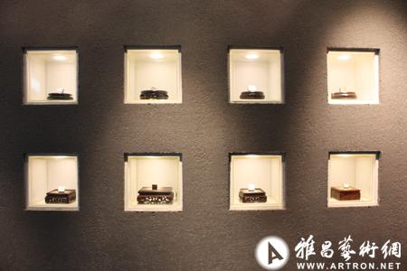 書(shū)屋入口右側的墻壁上被掏出八個(gè)小洞,整齊的放置著(zhù)他的銅印藏品,這些方印雖個(gè)頭不大,只有二三厘米的樣子,但卻個(gè)個(gè)刻畫(huà)得極為細致、精到,所謂“疏可跑馬密不透風(fēng)”也不過(guò)如此吧。如此破費周折的在墻壁內大做文章,可見(jiàn)汪涵的在對待這幾方印上的別具匠心。