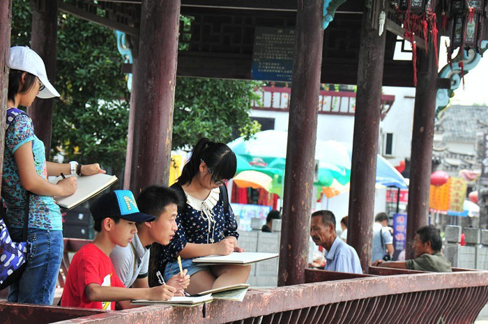 安徽廬上書(shū)畫(huà)院寫(xiě)生于2013年08月20日在古鎮三河展開(kāi)。據悉,廬上書(shū)畫(huà)院是一家集學(xué)術(shù)交流和專(zhuān)業(yè)培訓為一體的學(xué)術(shù)團體。辦學(xué)17年來(lái),已培養學(xué)員12000多名,其中1000多名優(yōu)秀學(xué)子考入中央美院、清華美院等優(yōu)秀院校,最有代表性的學(xué)生是現活躍于首都畫(huà)壇的魏嵬、夏禹。廬上書(shū)畫(huà)院師生外出寫(xiě)生已形成優(yōu)良傳統,每年都會(huì )組織學(xué)生外出寫(xiě)生,曾先后赴黃山、宏村、西遞、三河、大別山、西安、武漢、等地寫(xiě)生,極大地豐富了師生們的文化生活;開(kāi)拓了師生們的視野;增進(jìn)了師生們的友誼;加強了同學(xué)們集體意識!據安徽廬上書(shū)畫(huà)院院長(cháng)魏興無(wú)老師表示,九月份還會(huì )組織學(xué)生趕赴青島去領(lǐng)略海邊城市的無(wú)限風(fēng)光!