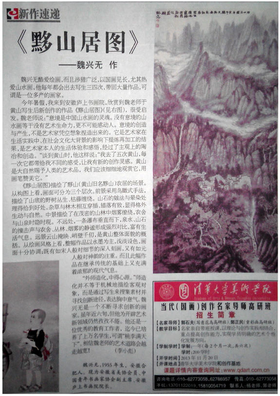 在剛結束的合肥市蜀山區文學(xué)藝術(shù)界聯(lián)合會(huì )成立大會(huì )上,我校校長(cháng)魏興無(wú)被當選為合肥市蜀山區文聯(lián)委員,作品被《會(huì )刊》刊登。