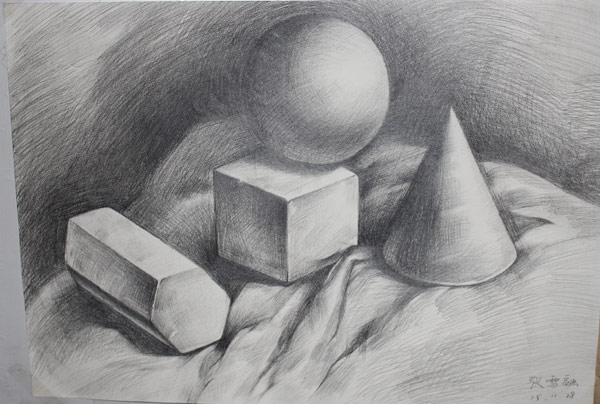 我是初隨魏老師學(xué)習的張雪融,接觸素描已將近一月,收獲良多。由初學(xué)時(shí)在老師的指導下機械地練習線(xiàn)條基礎,到逐漸嘗試表現比例與結構關(guān)系,后到感受造型、空間、明暗、強弱、虛實(shí)的表現手法循序漸進(jìn)。在每次練習時(shí)老師都會(huì )因材施教,由淺入深循循善誘,讓我能夠進(jìn)一步提高造型的準確性、內在結構的科學(xué)性以及畫(huà)面整體的層次感。